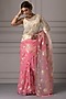 Pink & Cream Chiffon Gota Embellished Saree Set