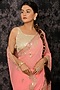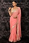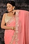 Featuring a pink saree in georgette base with gota patti border, boota and hand embroidery. It is paired with an unstitched blouse piece. Style it with statement jewellery and heels for an engagement ceremony or festive occasion.
