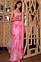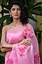 Featuring a pink saree in organza base with floral hand painting. It is paired with a pink crepe hand painted unstitched blouse piece. Accentuate with statement jewellery and heels for festive occasions or engagement ceremony.