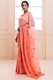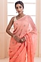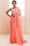 Featuring a pink saree in pure chiffon base with sequins and gota embellishments. It is paired with an unstitched blouse piece. Accentuate with statement jewellery and heels for a festive occasion.