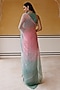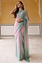 Pink & Sea Green Shaded Chiffon Mukaish Hand Embroidered Saree Set