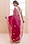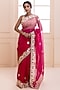 Featuring a pink shaded saree in organza base with gota patti hand embroidery. It is paired with a pink organza unstitched blouse. Accentuate with statement jewellery and heels for a festive occasion or engagement ceremony.