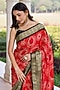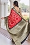 Featuring a red and black saree in gajji silk base with a zari border. It is paired with an unstitched blouse fabric. Accentuate it with oxidised jewellery, a statement clutch bag and block heels for festive occasions, wedding or sangeet ceremony.