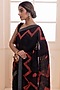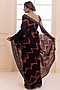 Featuring a red and black saree in pure chanderi base with natural dye hand block print and hand weaved ghicha temple border. It is paired with a black pure chanderi unstitched blouse piece. The timeless design of this saree will add a festive touch to any occasion.