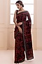 Featuring a red and black saree in pure chanderi base with natural dye hand block print and hand weaved ghicha temple border. It is paired with a black pure chanderi unstitched blouse piece. The timeless design of this saree will add a festive touch to any occasion.