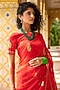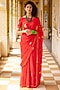 Featuring a red pre-draped saree in chiffon base with gota patti embellishment. It is paired with a stitched crepe blouse. Accentuate it with statement jewellery or heels for weddings or sangeet ceremonies.