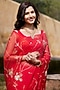 Featuring a red pre-draped saree in chiffon base with hand embroidery. It is paired with a stitched crepe blouse. Accentuate it with statement jewellery or heels for weddings or sangeet ceremonies.