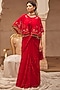 Red Chiffon Hand Embroidered Pre-Draped Saree Set