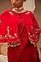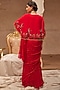 Featuring a red pre-draped saree in chiffon base with hand embroidery. It is paired with a stitched crepe blouse. Accentuate it with statement jewellery or heels for weddings or sangeet ceremonies.