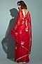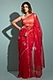 Featuring a red saree in organza base with gota patti hand embroidery. It is paired with a matching unstitched blouse. It is paired with a red crepe unstitched blouse. Accentuate with statement jewellery and heels for a festive occasion.