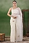 Featuring a white pre-draped saree in chiffon base with embroidery. It is paired with a stitched crepe blouse. Accentuate it with statement jewellery or heels for weddings or sangeet ceremonies.