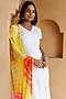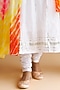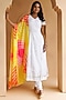 Featuring a white angrakha anarkali in cotton base with gota border. It is paired with pants and a chiffon leheriya dupatta. Accessorise with dangler earrings and heels.