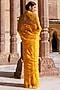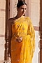 Featuring a yellow pre-draped saree in chiffon base with jaal work. It is paired with a stitched crepe blouse. Accentuate it with statement jewellery or heels for weddings or haldi ceremonies.