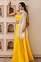 Featuring a yellow lehenga in chiffon base. It is paired with a crepe blouse and a kora silk dupatta having gota embroidery. Accentuate it with statement jewellery, a potli bag and block heels for wedding, haldi or sangeet ceremony.