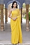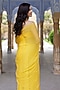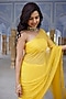 Featuring a yellow saree in chiffon base with mukaish hand embroidery. It is paired with a crepe blouse and a cotton underskirt. Perfect for weddings or day events ceremonies. The timeless design of this saree will add a festive touch to any occasion.