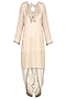 Featuring a baby pink kurta in tussar base with dori and zardozi hand embroidery. It is paired with matching dhoti pants in cotton base and embroidered dupatta in net base.