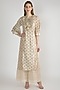 Featuring a beige long kurta in chanderi base. It has print, embellished gota lines, drawstrings and mulmul underling.