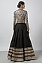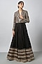 Featuring a black jacket in tussar base with embroidery. It is paired with a chiffon lehenga. Accentuate it with statement jewellery and heels for festive occasions or wedding ceremonies.