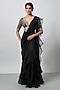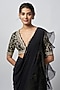 Featuring a black in chiffon and organza base with embroidery. It is paired with a tussar embroidered blouse. Accentuate it with statement jewellery or heels for a cocktail party, wedding or engagement ceremony.