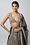 Featuring a black lehenga in katri base with mirror work. It is paired with an embroidered tussar blouse and an organza dupatta. Accentuate with statement jewellery and heels for festive occasions or wedding ceremonies.