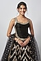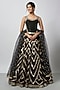 Featuring a black lehenga in organza base with mirror work. It is paired with an embroidered tussar blouse and a net dupatta. Accentuate with statement jewellery and heels for festive occasions or wedding ceremonies.
