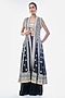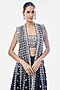 Featuring a black jacket in tussar base with mirror work and embellishments. It is paired with an embellished blouse and palazzo pants. Accentuate it with dangler earrings and embellished heels for a festive occasion, sangeet or engagement ceremony.