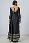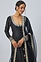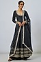 Featuring a black anarkali in tussar base with mirror embroidery. It is paired with linen satin pants and an organza dupatta. Accentuate with statement jewellery and heels for a festive occasion or sangeet ceremony.