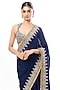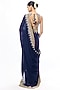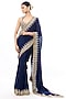 Featuring a blue saree in chiffon base with embroidery. It is paired with a tussar embroidered blouse. Accentuate it with statement earrings and elegant heels for a stylish ensemble, ideal for festive gatherings, sangeet or refined celebrations.