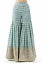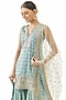Featuring a blue straight kurta in cotton silk base with embroidery. It is paired with sharara pants and an embroidered net tikki dupatta. Accentuate it with silver jewellery and embellished heels for a festive occasion or sangeet ceremony.
