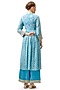 Blue Cotton Silk Floral Printed A-Line Anarkali Kurta
