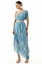 Blue Cotton Silk Floral Printed Asymmetric One-Shoulder Dress