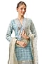 Featuring a blue straight kurta in cotton silk base with print and embroidery. It is paired with printed and embroidered flared sharara pants, including a net embroidered dupatta. Accentuate it with dangler earrings and heels for a festive occasion or sangeet ceremony.