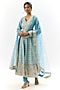 Featuring a blue anarkali in cotton silk base with gota patti and thread embroidery. It is paired with lycra churidar pants and a net dupatta. Accentuate with statement earrings and heels for a festive occasion.