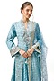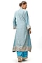 Featuring a blue front-open kurta in cotton silk base with zari and sequins embroidery. It is paired with linen satin palazzo pants and a net tikki dupatta. Accentuate it with statement jewellery and embellished heels for a festive occasion.