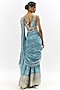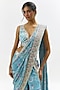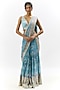 Featuring a blue sharara saree in georgette base with embroidery. It is paired with an embroidered blouse. Accentuate with statement earrings and heels for a festive occasion or sangeet ceremony.