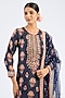 Featuring a blue kurta in cotton silk base with floral print and embroidery. It is paired with georgette embroidered sharara pants and a net sequin embroidered dupatta. Accentuate it with dangler earrings and embellished juttis for a festive occasion or sangeet ceremony.