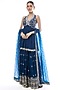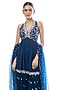 Featuring a blue kurta in tussar base with floral motif and gota patti embroidery. It is paired with embroidered georgette sharara pants and a net dupatta. Accentuate it with statement chandbali earrings and an embellished juttis for a refined ensemble, ideal for sangeet ceremonies or festive occasions.