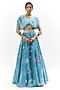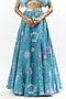 Featuring a blue lehenga in organza base with embellishment. It is paired with an embroidered georgette blouse. Accentuate it with statement earrings and heels for a wedding, sangeet or engagement ceremony.