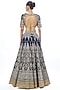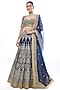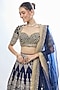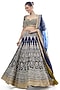 Featuring a blue lehenga in tussar base with embroidery. It is paired with an embroidered blouse having a sweetheart neckline and an organza dupatta. Accentuate it with statement chandbali earrings and an embellished heels for a refined ensemble, ideal for weddings or sangeet ceremonies.