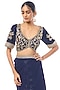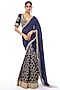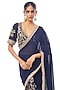 Featuring a blue saree in georgette and tussar base with embroidery. It is paired with a tussar embroidered blouse. Accentuate it with kundan polki jewellery and block heels for a wedding or sangeet ceremony.