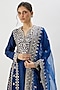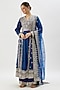 Featuring a blue anarkali in tussar base with floral and mirror embroidery. It is paired with palazzo pants and an organza dupatta. Complete your festive look with dangler earrings and elegant heels.