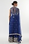 Featuring a blue cape in organza base with mirror hand embroidery. It is paired with a bralette and tussar flared pants. Complete your festive look with dangler earrings and elegant heels.