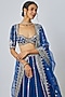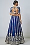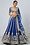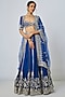 Featuring a blue lehenga in tussar base with motif embroidery. It is paired with an embroidered blouse having a sweetheart neckline, sequins and thread work, including an embroidered organza dupatta. Accentuate with statement jewellery and heels for weddings or sangeet ceremonies.