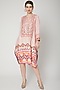 Featuring a blush pink kaftan tunic in cotton silk base with print. It has mirror and resham work embroidery.