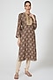 Featuring a brown long tunic in cotton silk base with print. It has gota and zardosi embellishments. This contains only one piece.