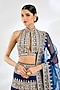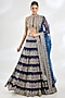 Featuring an electric blue lehenga in tussar base with mirror work and gold embroidery. It is paired with an embroidered tussar blouse and a net dupatta. Accentuate with statement jewellery and block heels for sangeet or wedding ceremonies.
