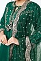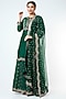 Featuring an emerald green in cotton silk base with zari butti work. It is paired with matching sharara pants and an embellished net dupatta.