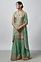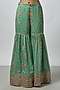 Featuring a green kurta in cotton silk base with floral jaal embroidery. It is paired with sharara pants and a chiffon dupatta. Accentuate it with statement jewellery and heels for a festive look.