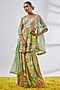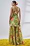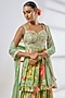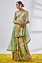 Gopi Vaid presents a green sleeveless peplum top in chiffon base with embroidery and floral print. It is paired with satin floral printed sharara pants and a chiffon dupatta. Accentuate it with kundan polki earrings and block heels for haldi ceremonies.