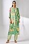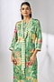 Green Satin Floral Printed Tunic Set